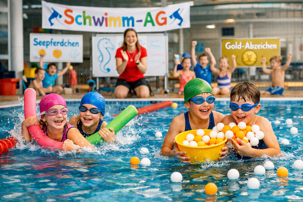 Seit den Sommerferien sind wir mit viel Motivation und Freude in der Schwimm-AG unterwegs. In dieser Zeit wurde regelmäßig trainiert, sodass wir noch vor den Weihnachtsferien bereits das ein oder andere Schwimmabzeichen abnehmen konnten – ein toller Erfolg für die Kinder.